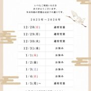 年末年始の営業日のお知らせ