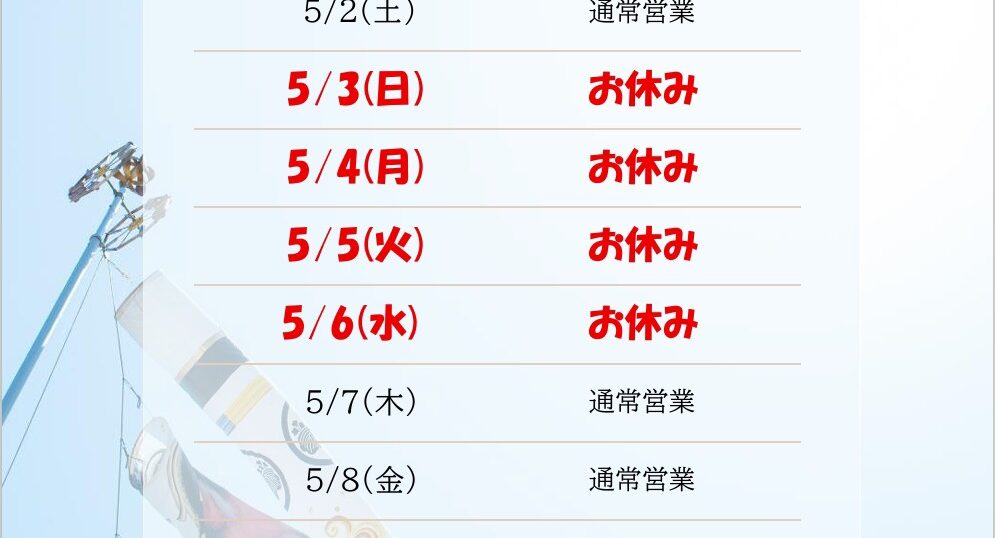 GW 店休日のお知らせ